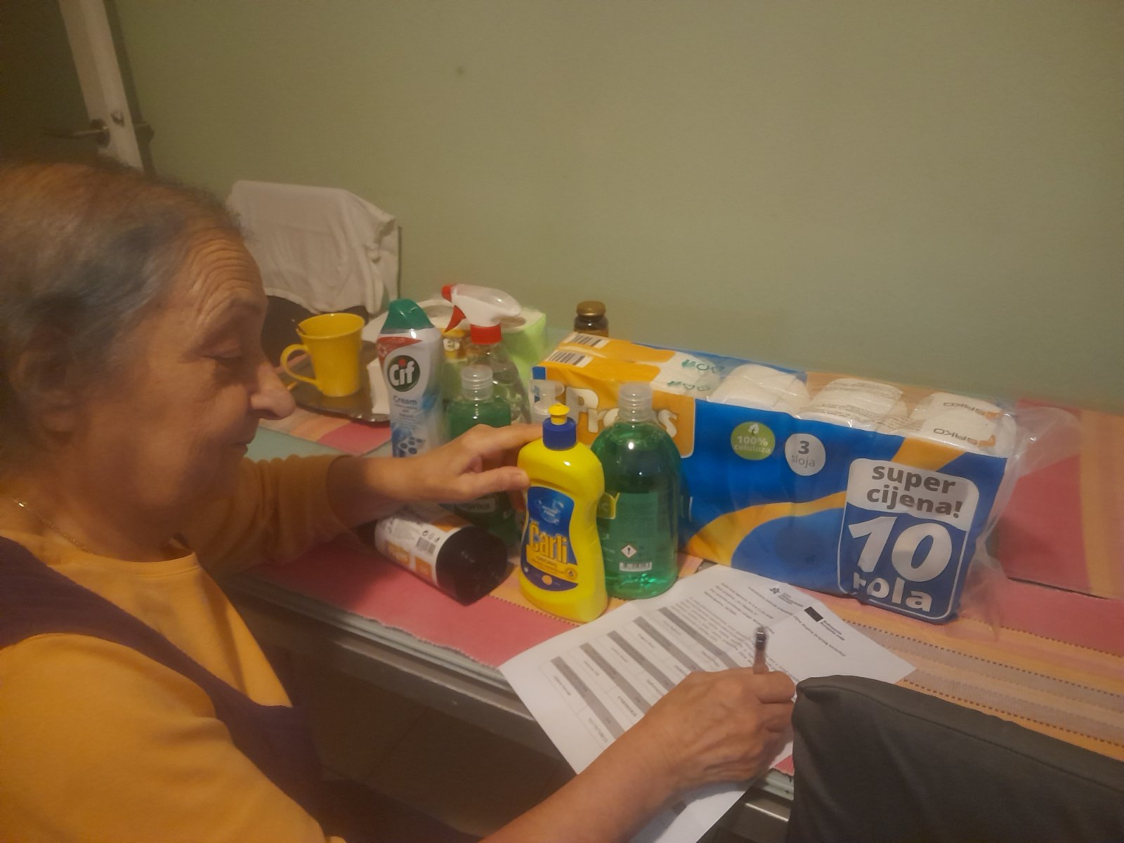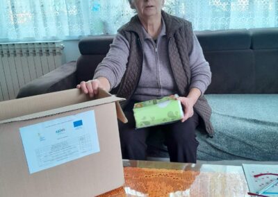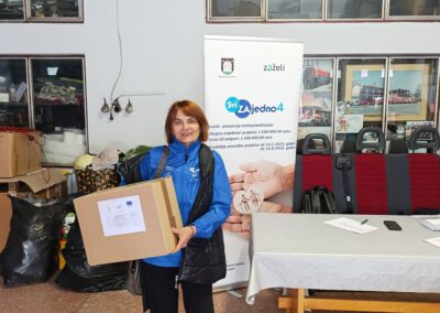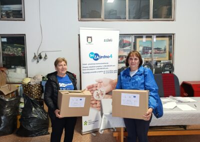 Tijekom listopada 2025. godine pripadnicima ciljne skupine projekta „Svi ZAjedno 4“ podijeljeno je ukupno 240 paketa s kućanskim i osnovnim higijenskim potrepštinama, koji su svojim sadržajem prilagođeni njihovim potrebama. Ova aktivnost provodi se redovito i predstavlja važan oblik potpore pripadnicima ciljne skupine. Redovita dostava potrepština omogućuje pripadnicima ciljne skupine lakše održavanje osobne i kućne higijene te im pruža osjećaj sigurnosti, podrške i pripadnosti zajednici. Na taj se način izravno doprinosi očuvanju njihova dostojanstva, smanjenju socijalne isključenosti i prevenciji institucionalizacije.