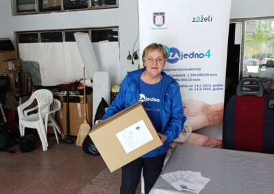 U sklopu projekta Zaželi „Svi ZAjedno 4“, tijekom mjeseca travnja provedena je redovita podjela paketa pripadnicima ciljane skupine. Projekt, koji je usmjeren na pružanje potpore starijim osobama i osobama s invaliditetom, nastavlja s aktivnostima koje doprinose poboljšanju kvalitete života korisnika.